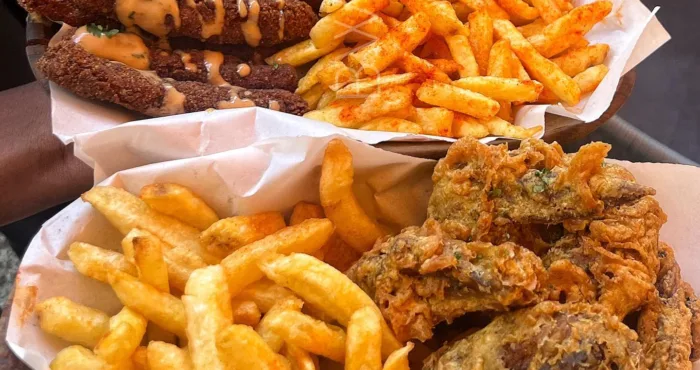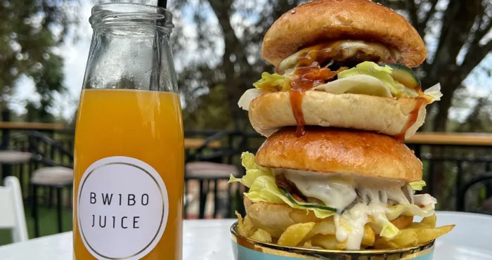 The kitchen serves up hearty comfort food with attitude. Think juicy burgers stacked high, spicy loaded fries, sizzling nyama platters, and house sauces that pack a punch. Whether you’re in for lunch or dinner, the portions are generous and the flavors hit every time. Fresh juices, cold cocktails, and colorful mocktails round out the menu, making sure there’s something for everyone.