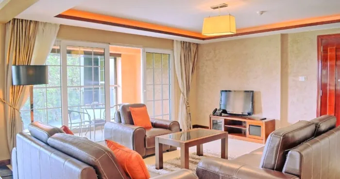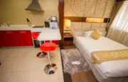 Choose from deluxe studios, one-bedroom suites, or two bedroom apartments all elegant and modern. Each has a living area, full kitchen, en-suite bathrooms, and balconies or large windows offering serene views. Furnishings include luxury fabrics, warm wood tones, and well equipped interiors. Expect fast Wi‑Fi, air conditioning, DSTV, and 24-hour security.