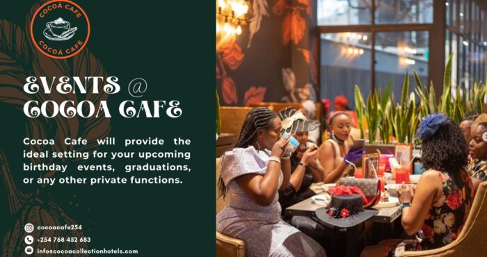 Cocoa Cafe Kilimani, a haven for culinary enthusiasts and event organizers alike, offers an exquisite venue for special occasions. Whether it’s a birthday celebration, graduation, or any private function, Cocoa Cafe provides the ideal setting to create beautiful memories. They invite families and friends to come together and revel in the warmth of togetherness and celebration within their inviting walls. We are one of the best restaurants in Kilimani region