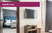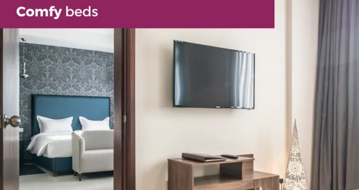 Each of our rooms is thoughtfully designed and equipped with super comfy beds, fast internet, and a 42 inch Smart TV for your entertainment.