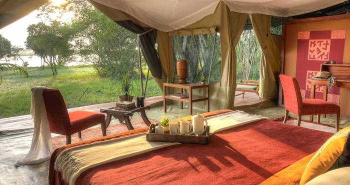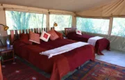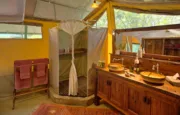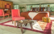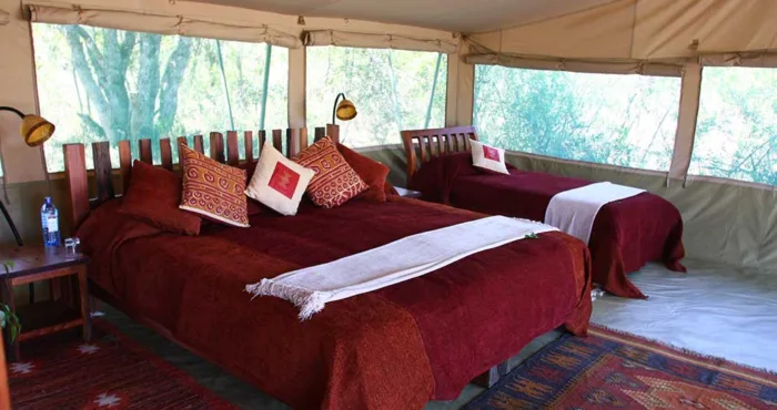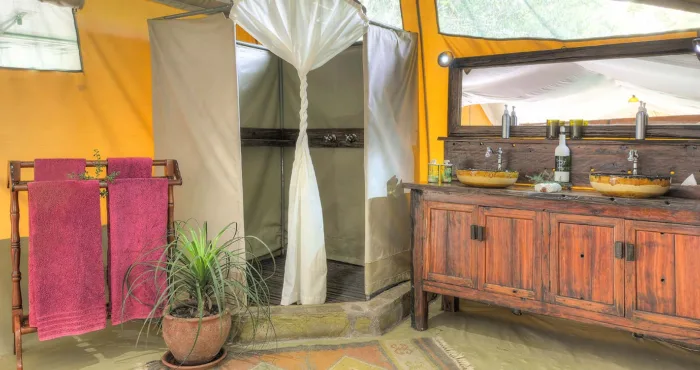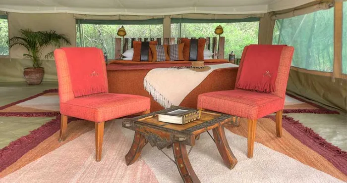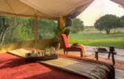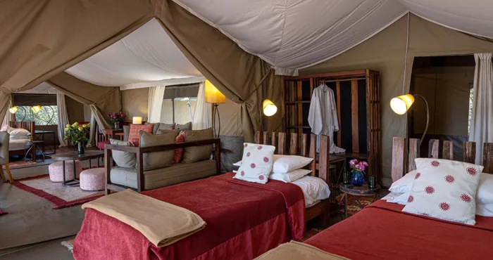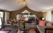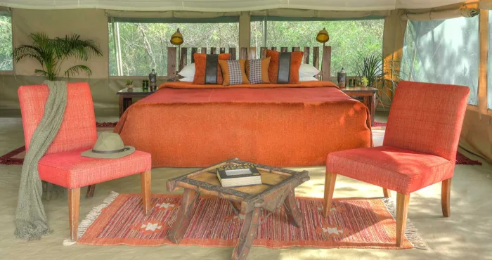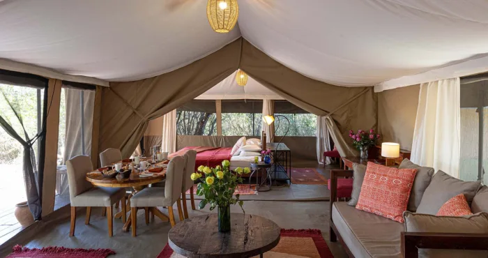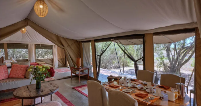 With only six tents, including a two-bedroom family suite, Kicheche Laikipia Camp ensures a quiet and personalized stay. Each tent is spacious, with ensuite bathrooms, private verandahs, and views of the dam a key watering hole during dry seasons. Recharge your devices with in tent charging stations and stay cool with 24-hour lighting powered by solar energy. Wi-Fi is available in the lounge, though the connection can be spotty offering a good reason to unplug and connect with nature instead.