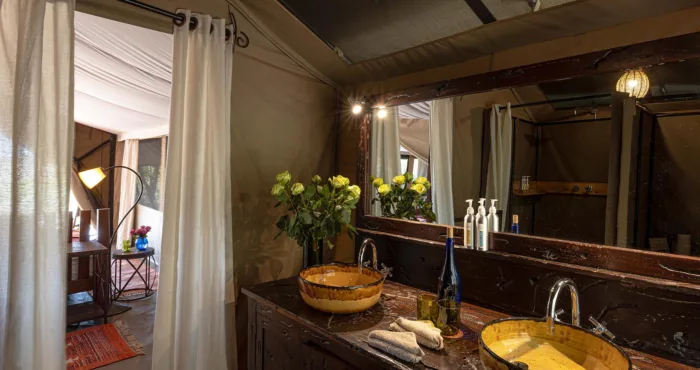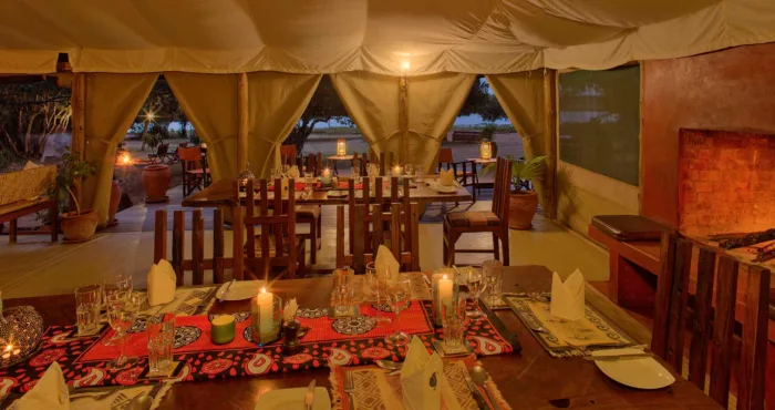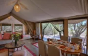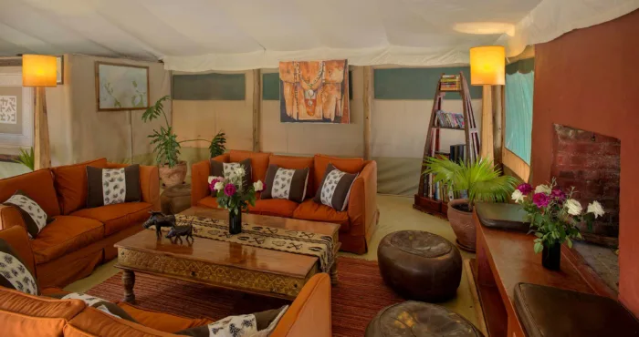 The lounge and dining tent come alive with warmth, especially on cooler evenings when fires are lit. You can enjoy al fresco meals during the day and gather for pre-dinner drinks in the evening, followed by some unforgettable stargazing.