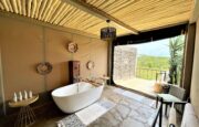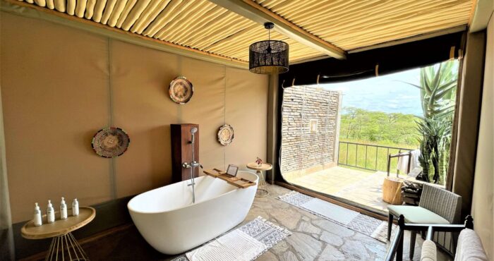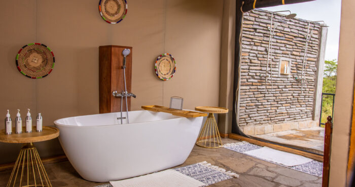 At Lalashe Maasai Mara, privacy and luxury harmoniously blend. With only five spacious luxury tented suites, guests are assured of an exclusive and intimate stay. Each suite is strategically placed along a serene stream, offering ample privacy and magnificent views of the open plains of Mara’s ecosystem. From the comfort of their rooms, guests can indulge in armchair safaris, observing the diverse wildlife that frequents the nearby acacia woodland and waterhole.