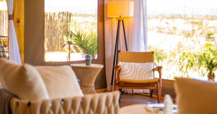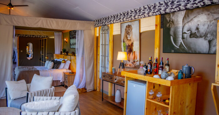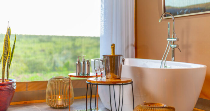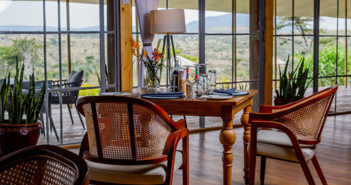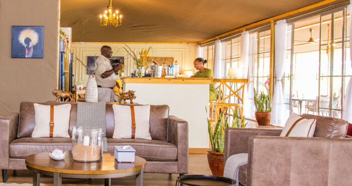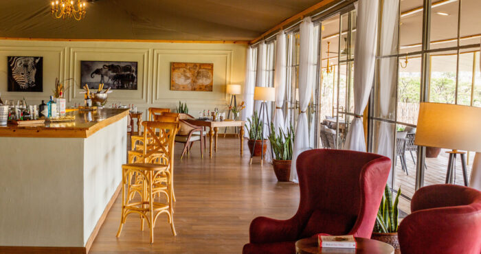 The main areas of Lalashe Mara Ripoi are designed to blend seamlessly with the natural surroundings. Guests can unwind in the luxurious indoor lounge, explore the well stocked library, or gather around the campfire under the starlit African sky. Outdoor lounges offer panoramic views of the Mara Ripoi Conservancy, providing a perfect backdrop for relaxing moments. The camp also features a fully stocked bar, multiple dining lounges, and shaded areas for both dining and relaxation.