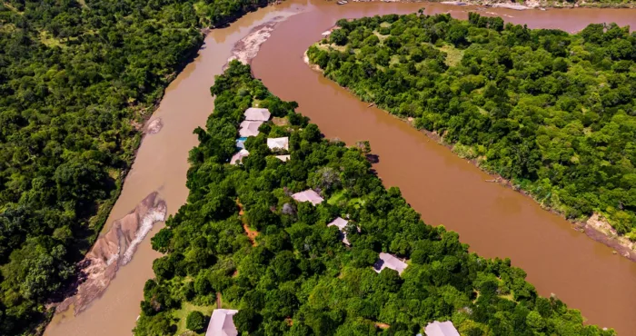 In a spectacular location in the heart of the Masai Mara, lies this small, intimate, luxurious, and elegant camp. Well hidden in the beautiful panorama of ravine forest, we offer superb views over the confluence of the Mara and Talek Rivers overlooking a hippo pool that is always busy with these beautiful large animals with crocodiles always in close proximity.