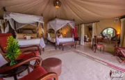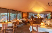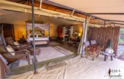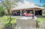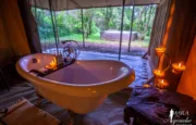12 Spacious well appointed tents are en-suite and decorated with an amazing fusion of modern African décor with old world charm. Each tent is partially enclosed in its own “ Boma”, has a large four poster king size bed or queen size bed, offers a wonderful view of the river, and is equipped with a large bathtub and outside shower, in addition, each tent has its own private plunge pool.