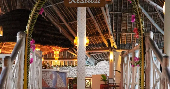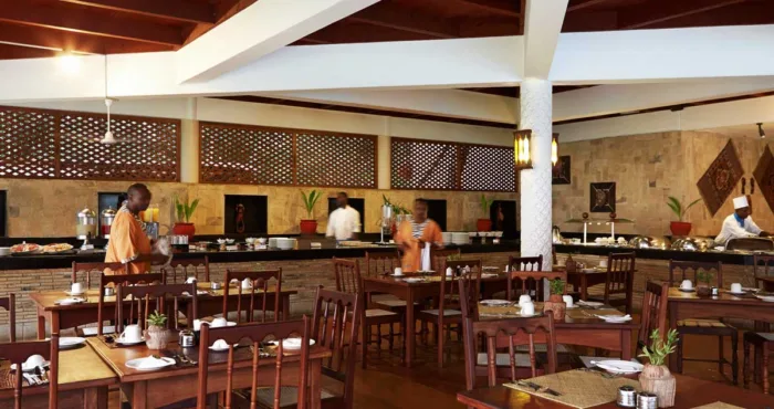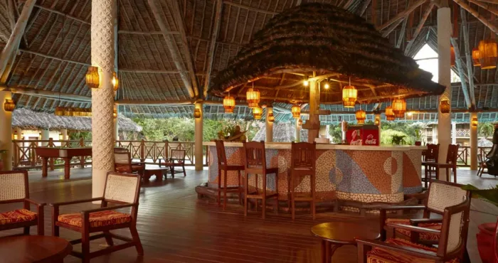 Dining at the resort is a laid back, flavorful experience. The Mnazi Main Restaurant offers buffet style meals with different themes. Guests enjoy breakfast, lunch, and dinner with soft drinks, juices, wine, beer, tea, and coffee. The Mawimbi Deck by the pool is perfect for lounging with an afternoon cappuccino or seafood dinner. The Kisiwa Bar and pool bar serve cocktails and cold drinks from 10:00 am to midnight.