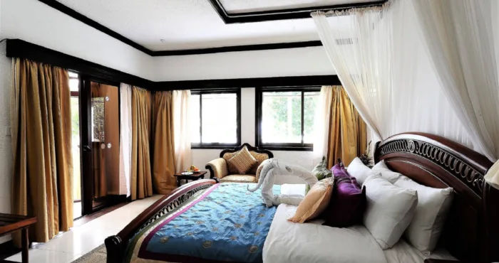 Just beyond the sea view rooms, lush gardens lead you to a sparkling pool, where the water reflects the tropical sky. Meanwhile, the in-house spa invites you to unwind with massages and treatments that draw from both tradition and modern wellness.