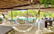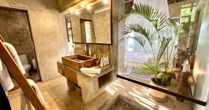 This enchanting eco lodge, deeply immersed in nature, offers a private and inviting design that graces the edge of a marine park, perched atop a cliff with sweeping ocean views that form a stunning backdrop for the entire complex.