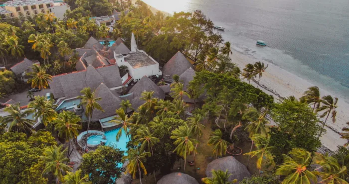 Severin Sea Lodge is an idyllic beachfront resort located in Bamburi Beach, offering guests a tropical paradise getaway. Built in a traditional African style, the lodge features charming round bungalows, a main building. And two swimming pools surrounded by a beautiful palm garden. The rooms and suites are equipped with handmade wooden furniture and stylish African design, creating a warm and inviting atmosphere. We are amongst the best hotels in Kisauni region.