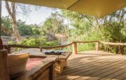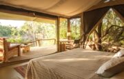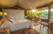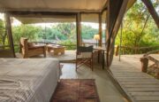 Shompole Wilderness invites guests to experience the true essence of Africa in style. The camp features six private tents, each raised on wooden decks and tucked within the lush cordia bushes. Two tents offer picturesque river views, two overlook the expansive plains, and two provide a cozy treehouse ambiance. All tents are designed for privacy, with large netted windows to allow refreshing breezes and an unobstructed view of the surrounding nature. The tents are en-suite with flush toilets and hot and cold running water for showers, ensuring a comfortable stay in the heart of the wilderness.