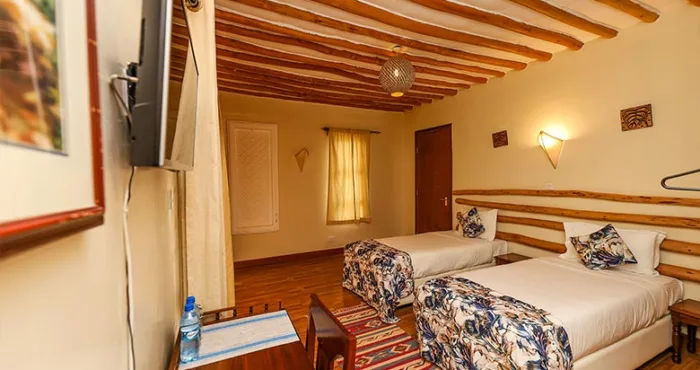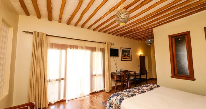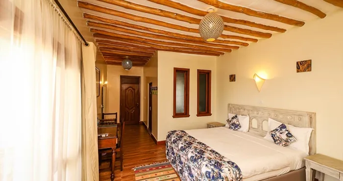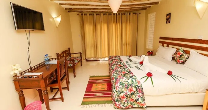 Built with Swahili-inspired design, the lodge blends African charm with simple elegance. Earth-toned walls, rustic finishes, and warm lighting set the mood. Each corner invites you to slow down and breathe.