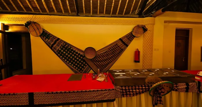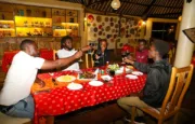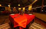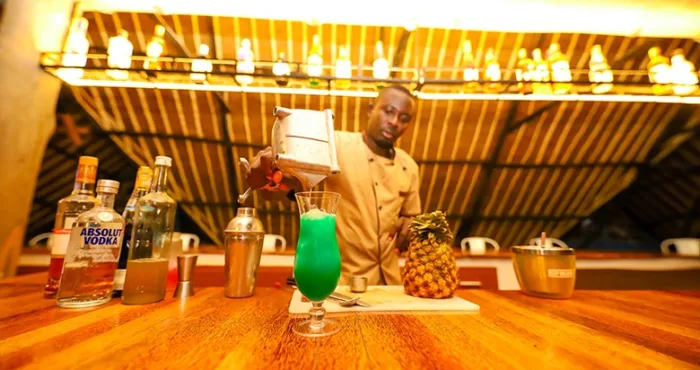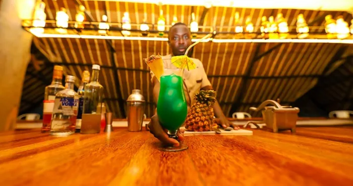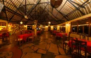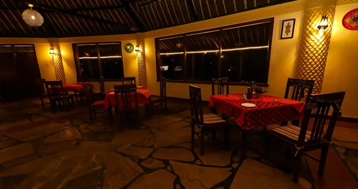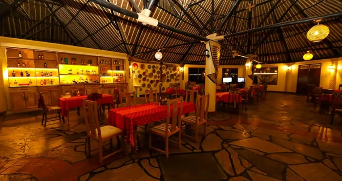 The restaurant serves fresh African and international dishes. You can dine indoors or outside under the stars. The bar offers a good mix of drinks for a relaxed evening.