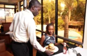 Waridi’s restaurant provides a delightful opportunity to savor a diverse array of delectable dishes. Set against an African backdrop, the Waridi Restaurant boasts an extensive range of international cuisines alongside authentic African fare. The ambiance shifts to match the occasion, whether it’s a casual luncheon, a family gathering, or an intimate dinner. Soft background music complements the dining experience while overlooking the inviting pool.